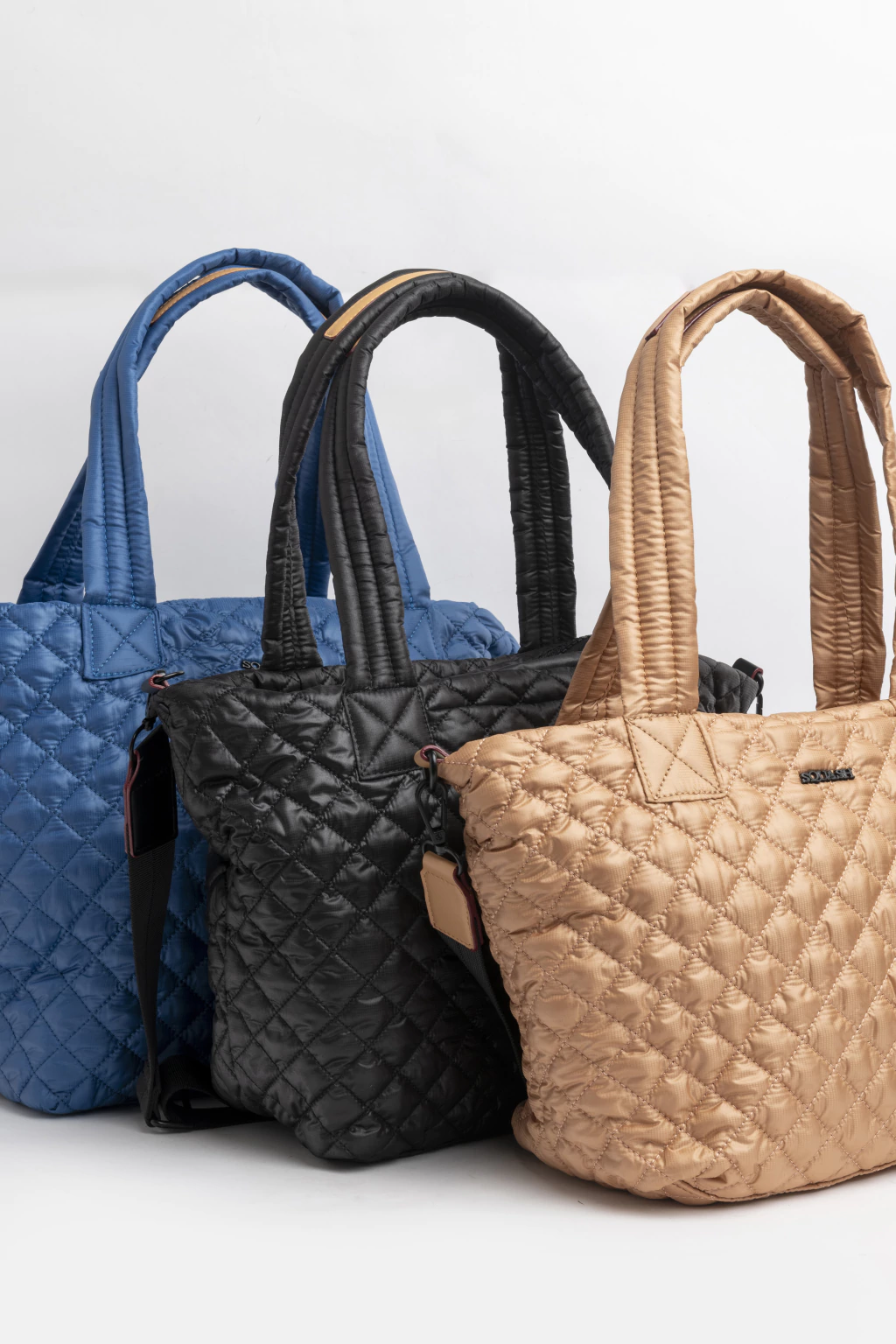 Cartera con bolsillos, matelasse, logo en chapa metálica y correa regulable de poliéster.